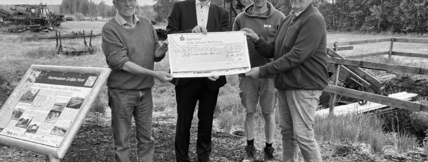 Die Stiftergemeinschaft der Sparkasse Celle-Gifhorn-Wolfsburg unterstützt mit 8.000 Euro den Förderverein Großes Moor e.V. und sorgt somit für ein ganz besonderes Museumserlebnis bei Platendorf. „Unser Dank gilt hierbei den vielen Freiwilligen, die uns in der Vergangenheit auf so unterschiedliche Art und Weise unterstützt haben. Und natürlich im Besonderen der Stiftergemeinschaft für deren finanziellen Support. Ohne diesen wäre es uns in diesem Jahr nicht möglich gewesen, die notwendigen Restarbeiten am Rundweg und am Ballenboden erfolgreich zu erledigen“, sagt Detlev Junge, 1. Vorsitzender des Fördervereins. Und Vorstandskollege Jörg Wulfes ergänzt: „Die Rückmeldungen vieler Besucherinnen und Besucher sind total positiv und bestätigen uns in unserem Engagement für diesen einzigartigen Ort.“